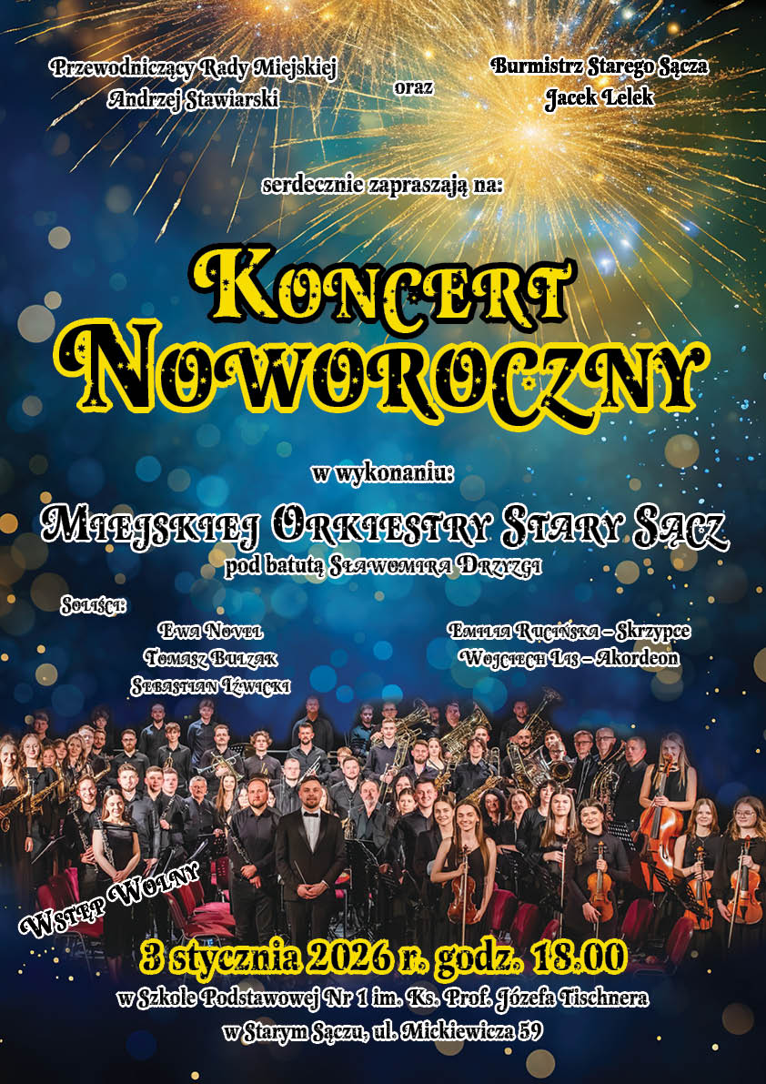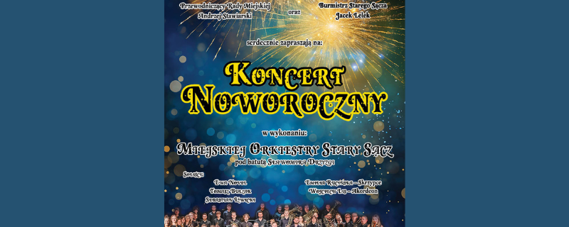 Burmistrz Starego Sącza Jacek Lelek serdecznie zapraszają na Koncert Noworoczny.